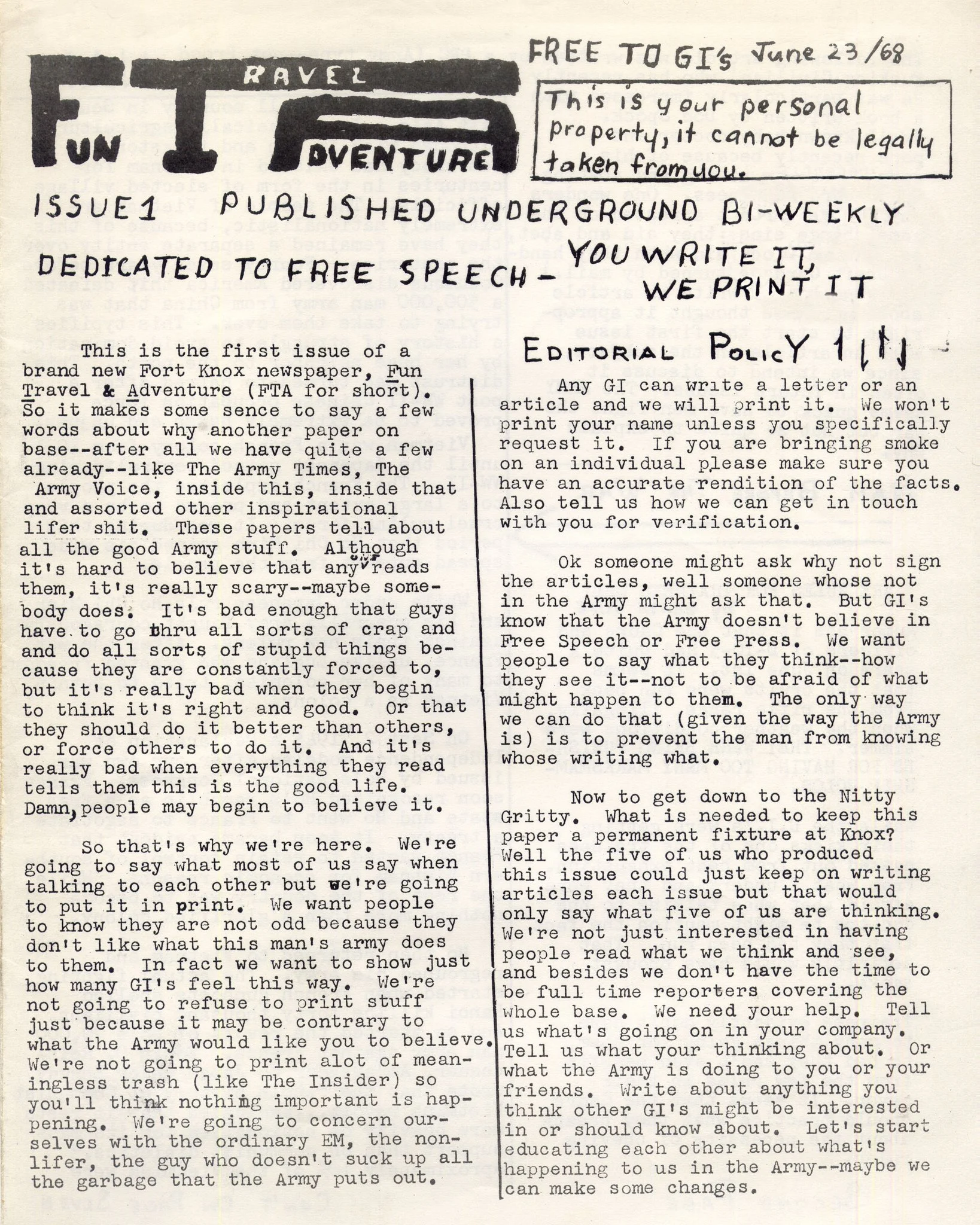 The never-before-told story of what went down at the Fort Knox Coffeehouse in Meade County, Kentucky, in 1969 & 1970.